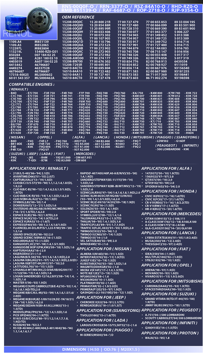 OIL NISSAN RENAULT PIAGGIO HONDA JEEP LANCIA ALFA ROMEO FIAT MITSUBISHI LADA INFINITI SUZUKI OPEL PEUGEOT SSANGYONG MERCEDES=RNS-00Q0F-O RRN-3377-O RSZ-84A10-O RHD-RZ0-O RMB-851139-O RAF-6687-O ROP-2718-O RJP-9354-O 15208-00Q0C 15208-00Q0D 15208-00Q0F 15208-00Q0H 15208-00Q0J 15208-00Q0L 15208-00Q1D 15208-00QAA 15208-00QAB 15208-00QAC 15208-00QAF 15208-AW300 15208-BN700 15208-7293R 16410-84CT0 16510-84A10 16510-84A11 16510-84CT0 152080021R 152085488R 152089599R 7700033408 7700073302 7700107905 7700110796 7700272523 7700272902 7700272903 7700272982 7700274177 7700676302 7700695801 7700695804 7700722482 7700727401 7700727478 7700727479 7700727480 7700728310 7700730077 7700734945 7700734957 7700735917 7700737991 7700744879 7700745708 7700748326 7700749326 7700854776 7700854852 7700856114 7700871583 7700873583 7700873603 7700855853 7700866099 7700869390 7701043377 7701349452 7701349725 7701349752 7701727480 7702144083 7708715Z47 8200033408 8200274858 8200768913 8200768927 8200867976 8200867980 8671017369 8671002274 8933004195 8983501900 8983601900 5006227 5013388 5013389 5016714 5016715 5016785 5016956 5017317 5017319 6439354 9111019 93156540 93181255 93198441 93198598 1109.A4 1109.A5 112397L 113219L 850284 4402718 4403019 4415442 4449274 46796687 17318-40025 6001543357 M851139 M852065 M883804 15400-RZ0-G01 0071840225 A2811800310 A6071840225 46796687 46337528 46796687 MLS000602 MLS000462A 147 156 GT GTV SPIDER M-SERIE IDEA MULTIPLA STILO CIVIC CR-V HR-V Q30 CHEROKEE RENEGADE LARGUS CROSS LYBRA ESTATE MUSA THESIS CARISMA SPACE STAR CITAN 108 111 A168 A180 GLA180 ARENA MOVANO VIVARO TIVOLI GRAND VITARA JIMNY A.751 SCOUTY CABRIOLET ALMERA INTERSTAR JUKE KUBISTAR MAGNITE MICRA NOTE NP200 NV200 PLATINA PRIMASTAR PRIMERA QASHQAI +2 TERRANO TIIDA 21 AVANTIME CAPTURE CLIO SYMBOL DOKKER DUSTER ESPACE EXPRESS FLUENCE GRAND SPACE SCENIC KADJAR KANGOO BE BOP KAPTUR KIGER LAGUNA TRAFFIC TWINGO VEL SATIS WIND LATITUDE LOGAN SANDERO MASTER MEGANE MODUS PICK UP R19 R25 R5 RAPID SANDERO STEPWAY SCENIC SOLENZA