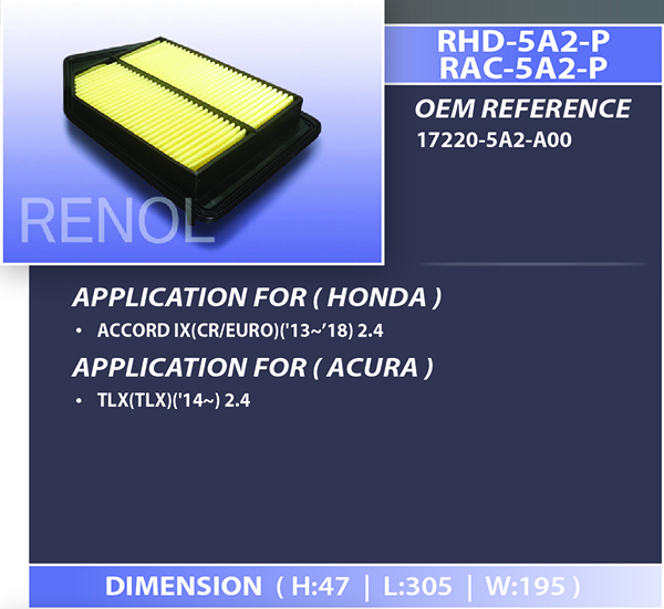 • AIR HONDA ACURA=RHD-5A2-P RAC-5A2-P 17220-5A2-A00 ACCORD TLX