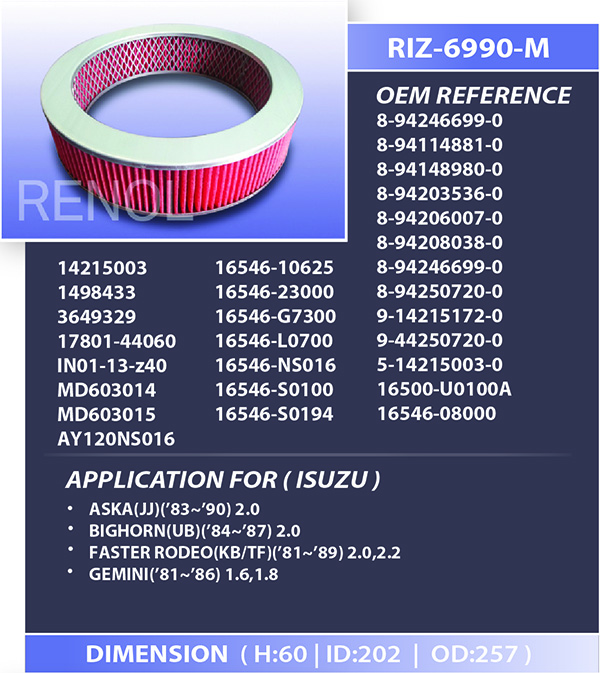 • AIR ISUZU=RIZ-6990-M 8-94246699-0 8-94114881-0 8-94148980-0 8-94203536-0 8-94206007-0 8-94208038-0 8-94246699-0 8-94250720-0 9-14215172-0 9-44250720-0 5-14215003-0 16500-U0100A AY120NS016 ASKA BIGHORN FASTER RODEO GEMINI 16546-08000 16546-10625 16546-23000 16546-G7300 16546-L0700 16546-NS016 16546-S0100 16546-S0194 14215003 1498433 3649329 17801-44060 1N01-13-Z40 MD603014 MD603015