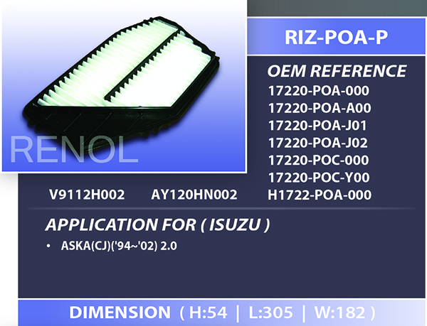 AIR ISUZU=RIZ-POA-P 17220-POA-000 17220-POA-A00 17220-POA-J01 17220-POA-J02 17220-POC-000 17220-POC-Y00 H1722-POA-000 AY120HN002 V9112H002 ASKA
