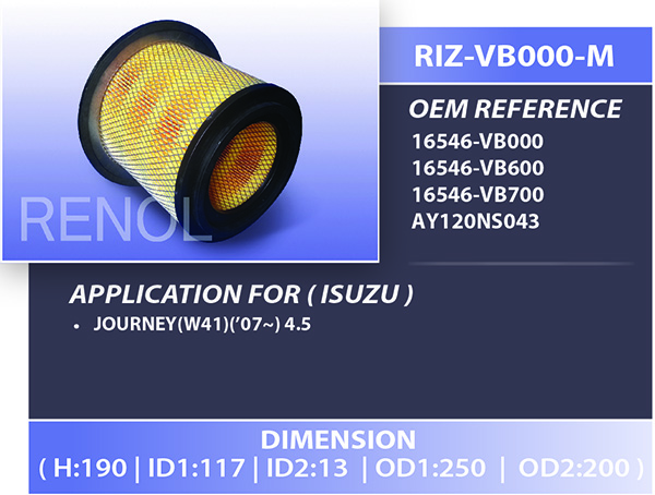 AIR ISUZU=RIZ-VB000-M 16546-VB000 16546-VB600 16546-VB700 AY120NS043 JOURNEY