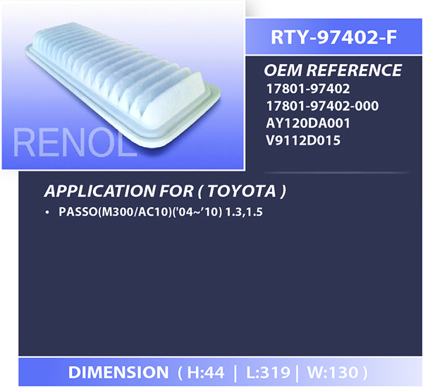 • AIR TOYOTA=RTY-97402-F 17801-97402 17801-97402-000 AY120DA001 V9112D015 PASSO