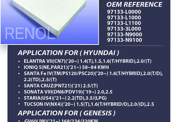CABIN HYUNDAI GENESIS=RHY-L1000-C 97133-L1000 97133-L1100 ELANTRA SANTA FE SONATA TUCSON STARIA 97133-N9100 97133-L0000 97133-N9000 97133-3L000 SANTA CRUZ RGN-L1000-C IONIQ 5