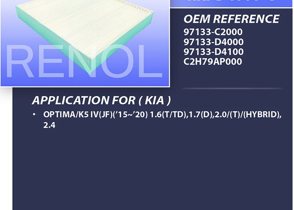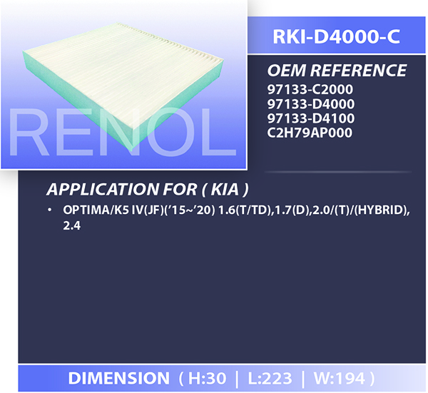 • CABIN KIA=RKI-D4000-C 97133-D4000 97133-C2000 97133-D4100 C2H79AP000 OPTIMA K2 97133-D4200