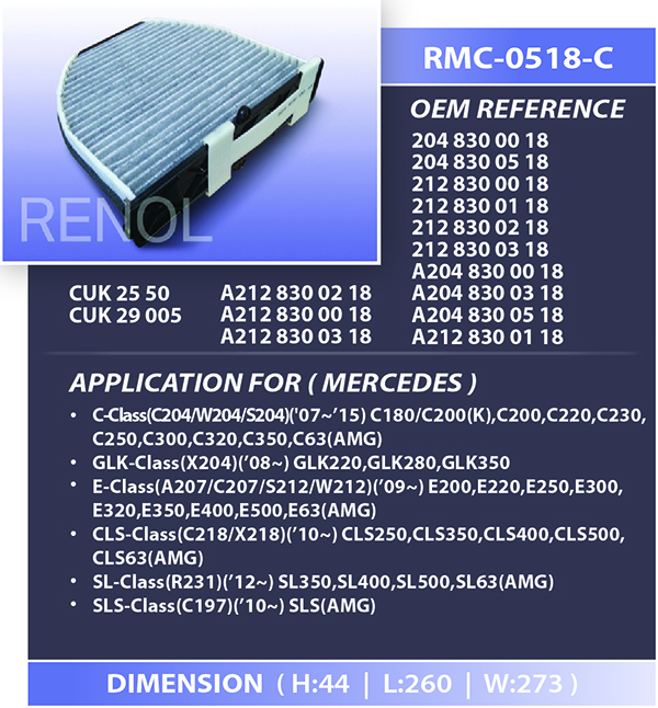 CABIN MERCEDES=RMC-0518-C 2048300018 2048300518 2128300018 2128300118 2128300218 2128300318 A2048300018 A2048300318 A2048300518 A2128300118 A2128300218 A2128300018 A2128300318 A2048300518 A2128300118 A2128300218 A2128300018 A2128300318 CUK2550 CUK29005 C180 C200 C220 C230 C250 C300 C320 C350 C63 C204 W204 S204 X240 GLK220 GLK280 GLK350 A207 C207 S212 W212 E200 E220 E250 E300 E320 E350 E400 E500 E63 C218 X218 CLS250 CLS350 CLS400 CLS500 CLS63 R231 SL350 SL400 SL500 SL63 C197 SLS AMG
