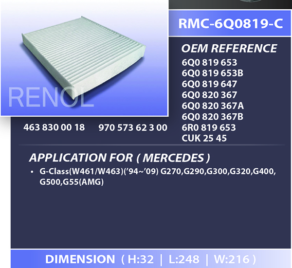 CABIN MERCEDES=RMC-6Q0819-C 6Q0819653 6Q0819653B 6Q0819647 6Q0820367 6Q0820367A 6Q0820367B 6R0819653 4638300018 97057362300 CUK2545 W461 W463 G270 G290 G300 G320 G400 G500 G55 AMG