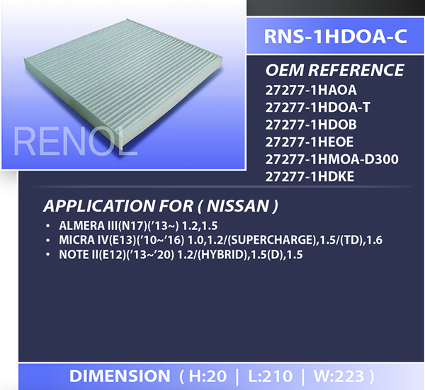 CABIN NISSAN=RNS-1HDOA-C 27277-1HAOA 27277-1HDOA-T 27277-1HDOB 27277-1HEOE 27277-1HMOA-D300 27277-1HDKE ALMERA MICRA NOTE
