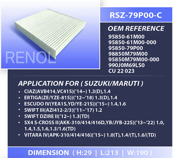 CABIN SUZUKI=RSZ-79P00-C 95850-79P00 95850-61M00 95850-61M00-000 990J0M69LS0 98850M79M000 98850M79M00-000 CIAZ ERTIGA ESCUDO SWIFT SX4 S-CROSS VITARA